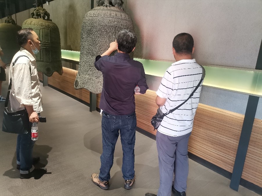 全体党员带着学习的态度从大钟寺的主殿和偏殿了解古钟的相关知识,讨论大钟的历史及所代表的意义,从春秋战国到明清跨越长达两千多年历史的古钟所蕴含的文化深深震撼着我们,通过语音介绍大家一起了解了很多其中的故事,背后的警示意义令人深思。其中有一座“魏忠贤钟”,钟身上面刻着“司礼监秉笔太监魏忠贤虔铸造”,由此可知此钟为明末大宦官魏忠贤捐资铸造,如果仔细看这口钟,就会发现无论从哪个方向看,这口钟都是歪的,民间老百姓流传的说法是因为魏忠贤人不正、是大奸臣,所以,所以铸出来的钟也是歪的。对后人来说,这口“歪钟”警示着我们为人要堂堂正正。